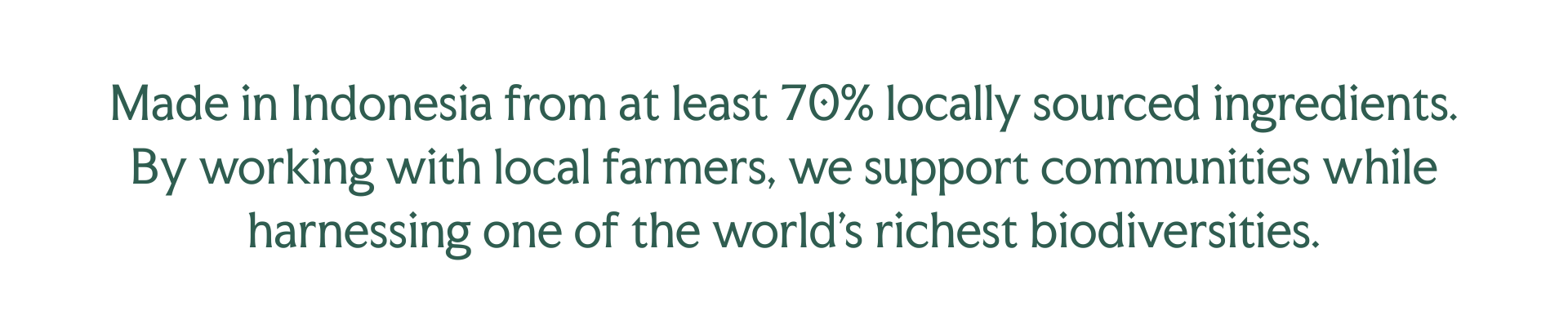 Made in Indonesia from at least 70% locally sourced ingredients. By working with local farmers, we support communities while harnessing one of the world’s richest biodiversities.