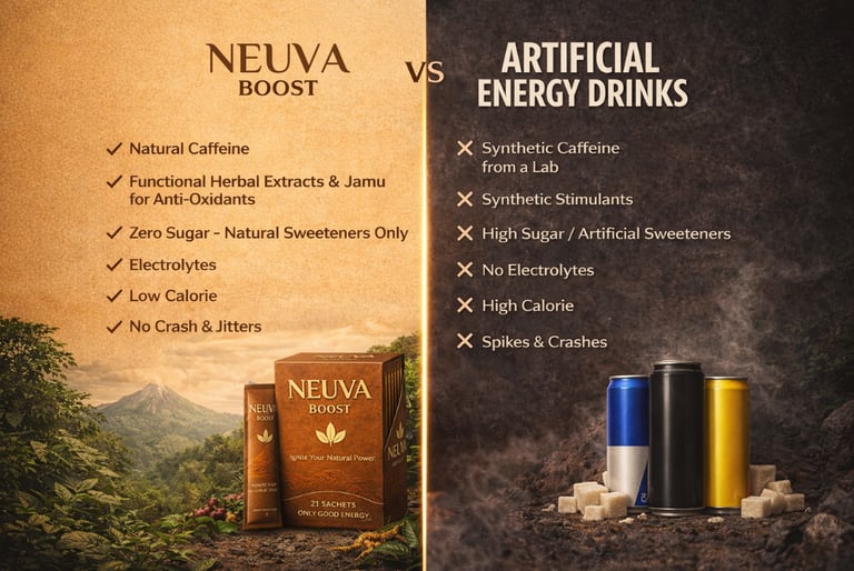Most energy drinks rely on synthetic stimulants and excessive sugar — NEUVA is different.